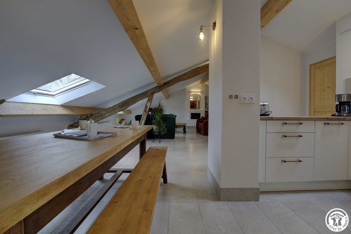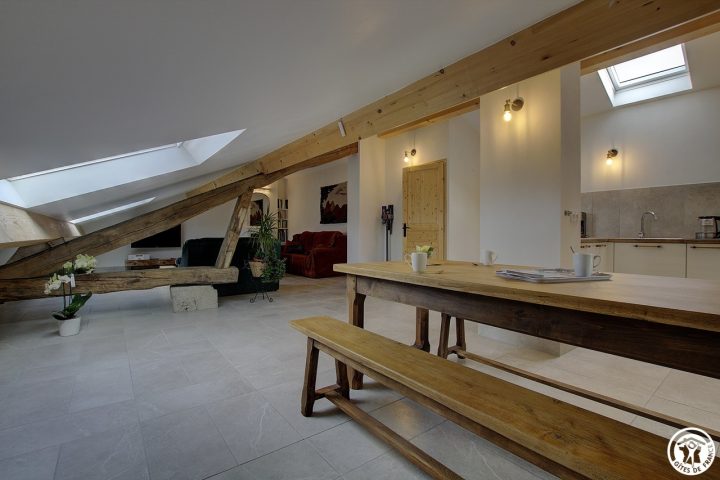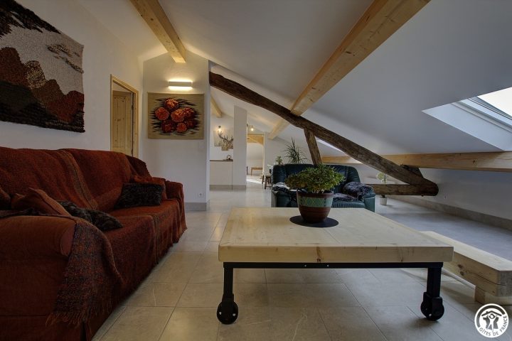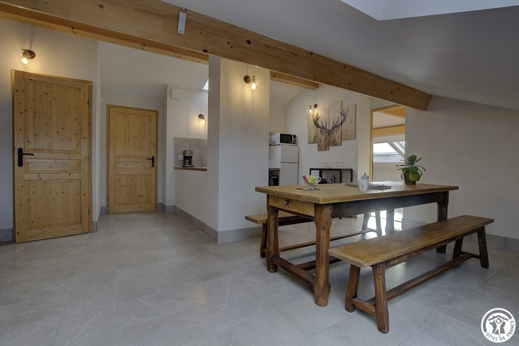 Es bietet mit seinen zwei Schlafzimmern und zwei Sanitäranlagen Platz für bis zu 6 Personen. Durch einen gemeinsamen Eingang gelangen Sie in den 2. Stock dieses schönen Hauses, dann geht der Eingang direkt in diesen großen Wohnraum, der aus einer Einbauküche besteht und sich zum Essbereich hin öffnet, gefolgt in der Verlängerung von einem Entspannungsbereich mit einem elektrischen Led-Kamin mit sehr realistischem Holzfeuereffekt. Sie werden vom Dachstuhl und der Helligkeit dank der großen Veluxfenster mit Solarläden, die Ihnen einen Panoramablick auf das Tal bieten, verzaubert sein. Sie verfügen über zwei unabhängige Schlafzimmer: ein sehr großes Zimmer (30 m²) mit zwei Doppelbetten (160*200 cm) und der Möglichkeit, dank der Dekoration seine Privatsphäre zu wahren. Das Plus dieses Zimmers: ein eigenes Badezimmer (mit WC und Dachfenster). Das zweite Schlafzimmer (2 Einzelbetten 90*190) führt Sie in diesen schönen Wald, wo Sie sich in einem sanften Licht wiegen können. Ein zweites Badezimmer ist vom Wohnzimmer aus zugänglich und besteht aus einer Dusche und einem WC. Die Heizung ist elektrisch. Bei Ihrer Ankunft werden Sie es zu schätzen wissen, dass die Betten gemacht, die Handtücher bereitgestellt und die Nebenkosten inbegriffen sind. Im selben Gebäude befinden sich zwei Ferienhäuser für 5 und 3 Personen, in denen Sie mit Ihrer Familie oder Ihren Freunden zusammenkommen können. Wenn Sie zusammen mieten, steht Ihnen ein großer Obstgarten zur Verfügung, in dem Sie sich in einer ländlichen Umgebung treffen können. Entdecken Sie Samognat mit seinem See, seinen Bergen, seinem Wald und den Wanderwegen, die an der Unterkunft beginnen. Ein idealer Ort für zahlreiche Mountainbike- und Wandertouren, bis zu den Sprüngen von Charmine oder den Schluchten des Val d'Enfer. Das Anwesen überragt ein grünes Tal, durch das sich der Bach Anconnans und der Fluss Oignin schlängeln.