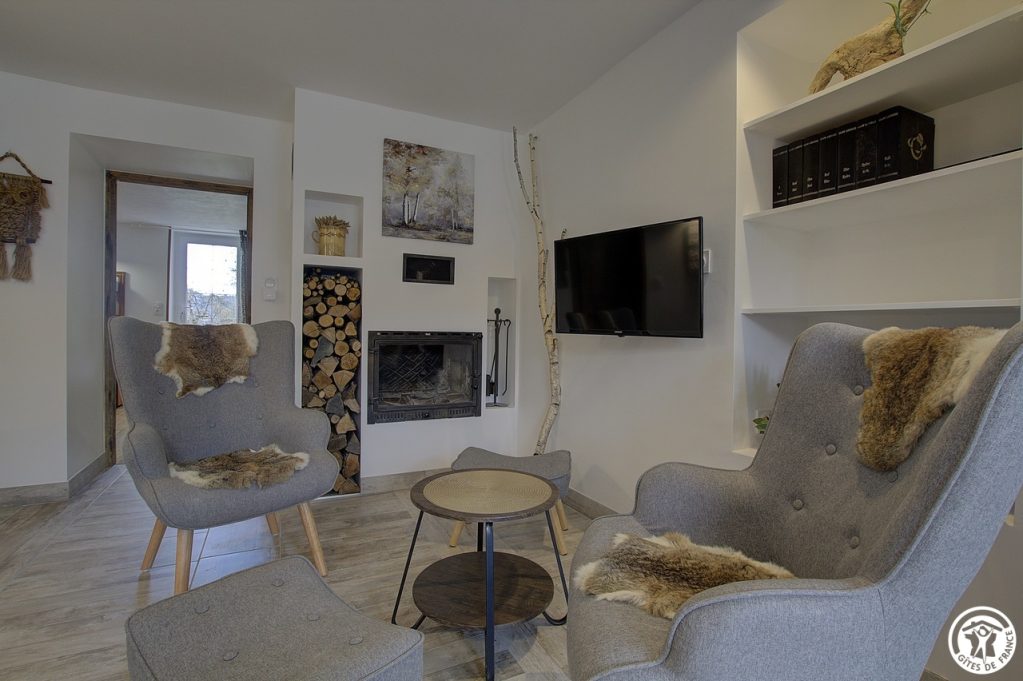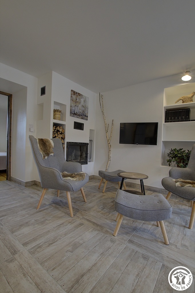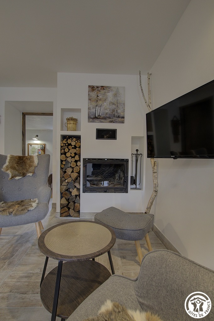 Sie betreten das Haus über den gesicherten Innenhof und gelangen dann in das Wohnzimmer mit seiner voll ausgestatteten Küche, die sich zu einem Salon öffnet, in dem man vor dem Kamin sitzen kann. Das Schlafzimmer mit Parkettboden, ausgestattet mit einem Schreibtisch aus Teakholz, umfasst ein Bett 160*200 plus ein Klappbett mit regelmäßiger Liegefläche 90*190, bietet direkten Zugang zur Terrasse aus Steinplatten mit freiem Blick auf den Obstgarten; ein Badezimmer und sein WC. Ein zweites Ferienhaus für 5 Personen liegt nebeneinander, um das Wiedersehen mit der Familie oder mit Freunden zu erleichtern und den großen Obstgarten, der den Gästen zur Verfügung steht, voll auszunutzen. Das Anwesen überragt ein grünes Tal, durch das sich der Bach Anconnans und der Fluss Oignin schlängeln. Pluspunkte des Ferienhauses Chez le Tourneur: Die Betten sind bei der Ankunft gemacht, die Handtücher werden gestellt und die Nebenkosten sind im Preis inbegriffen.